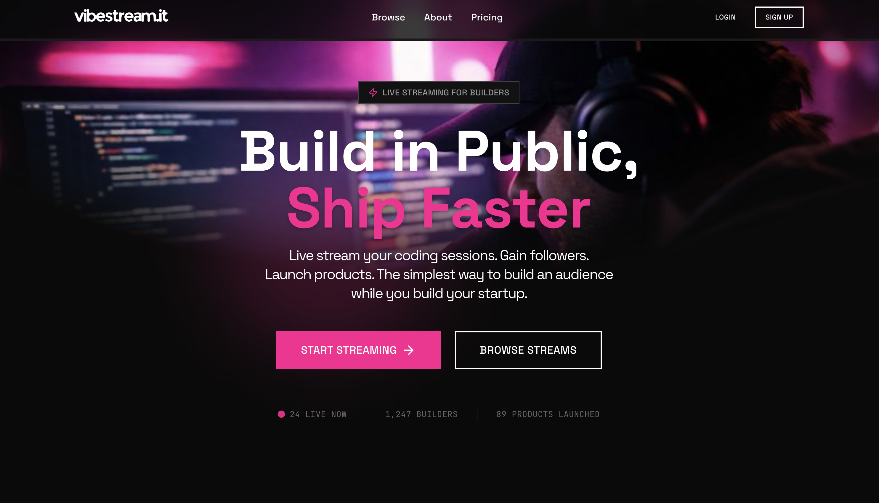 VibeStream is a live-streaming platform built for founders, developers, and makers who want to build projects in public and grow real momentum before they launch. It lets you stream your work as you code, plan, and make decisions, turning the building process itself into a growth engine. Instead of launching in isolation, VibeStream helps you attract early users, teammates, and investors by showing consistent execution, transparency, and progress in real time. Each project becomes a living, public timeline of work, ideas, and learning—designed to solve the cold-start problem by building trust and an audience while the product is being built.